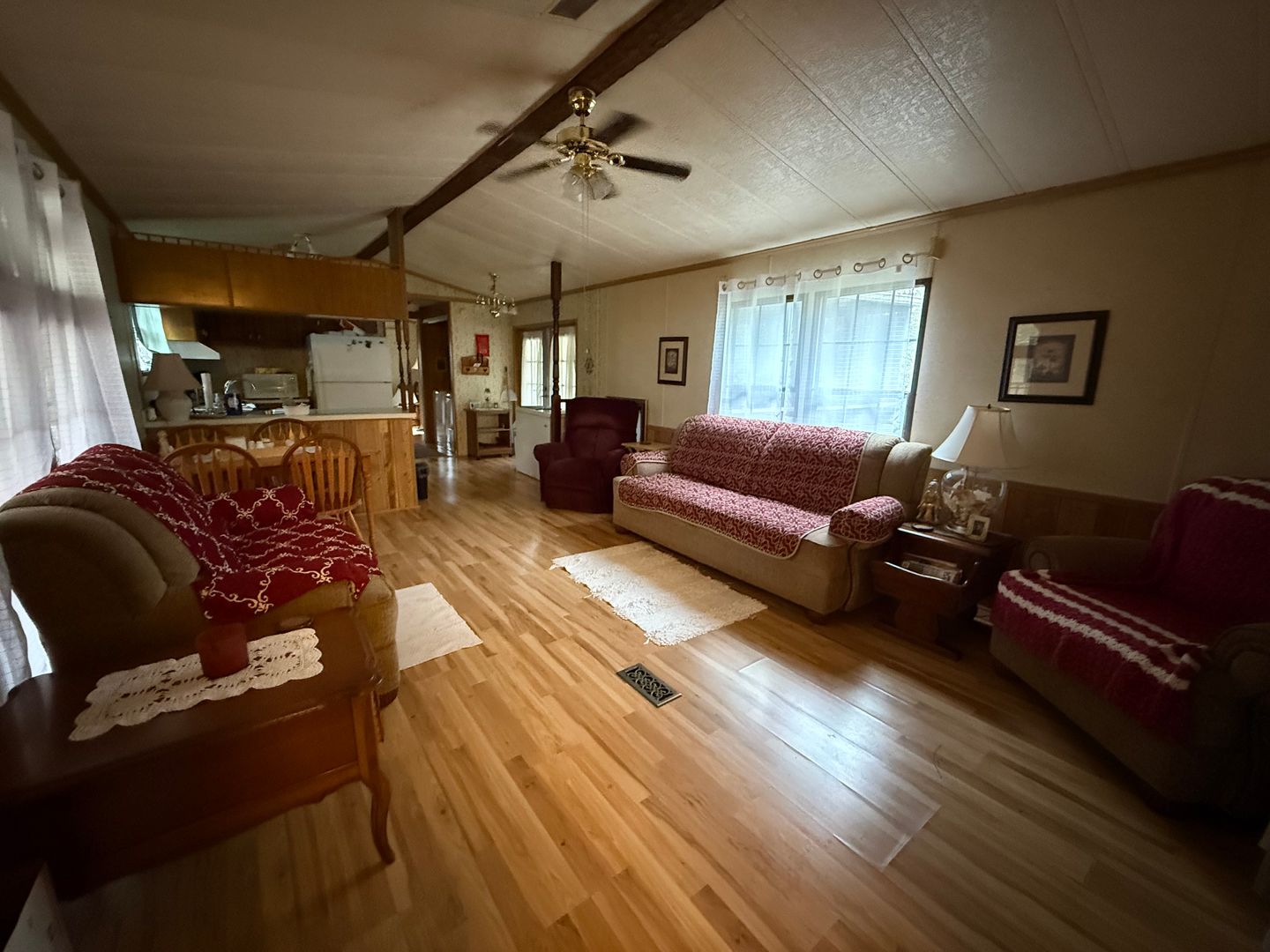 Welcome to this charming 2-bedroom, 2-bathroom mobile home located in the heart of Kingston, GA. This home is equipped with all the essentials for comfortable living. The kitchen comes with a stove and refrigerator, perfect for preparing and storing your favorite meals. A washer and dryer are also included, making laundry day a breeze. The home features central heat and air, ensuring your comfort in all seasons. Propane gas is required. Lawn care is included, so you can enjoy the beauty of your surroundings without the hassle of maintenance. If desired, the home can be furnished, providing you with a ready-to-live-in space. Experience the ease and comfort of this well-equipped home in Kingston!